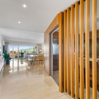 The spacious 222 m2 apartment is divided into the following rooms on one level: Entrance area, modern kitchen and utility room.